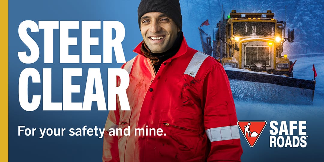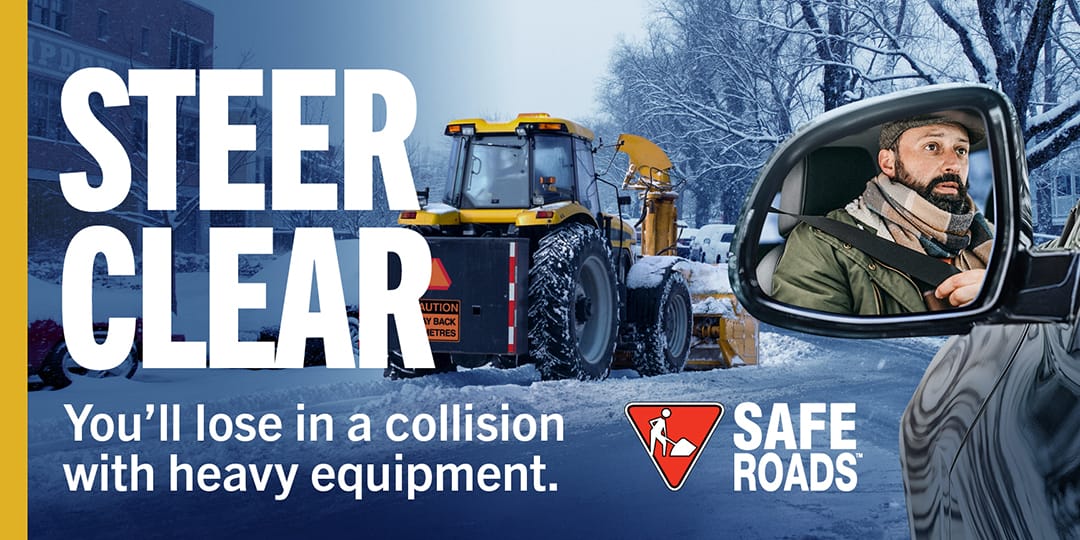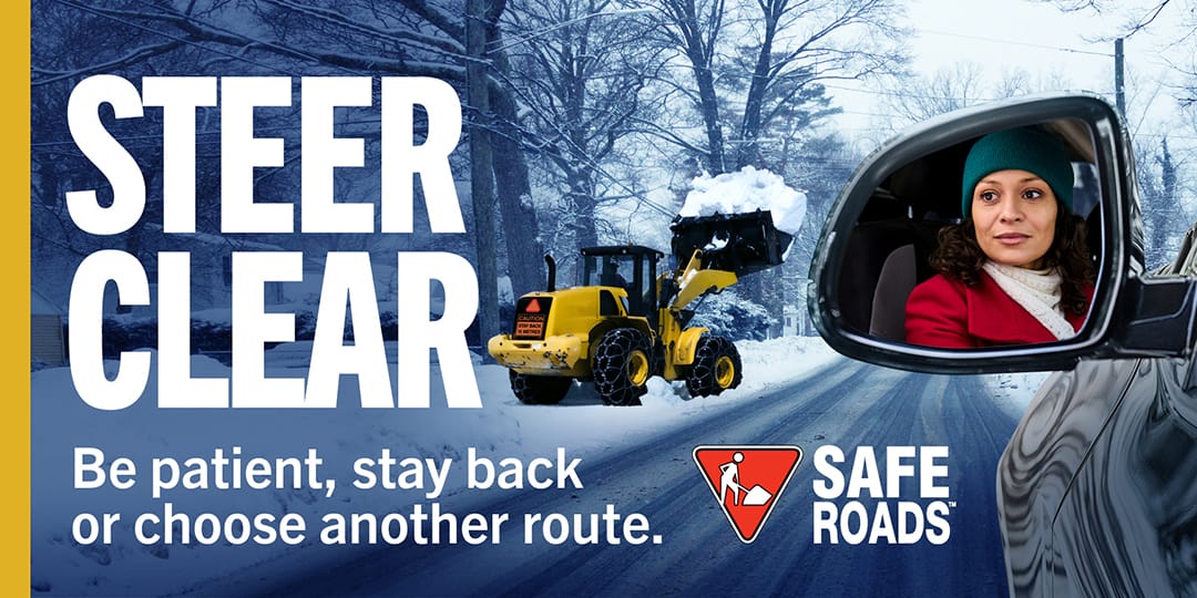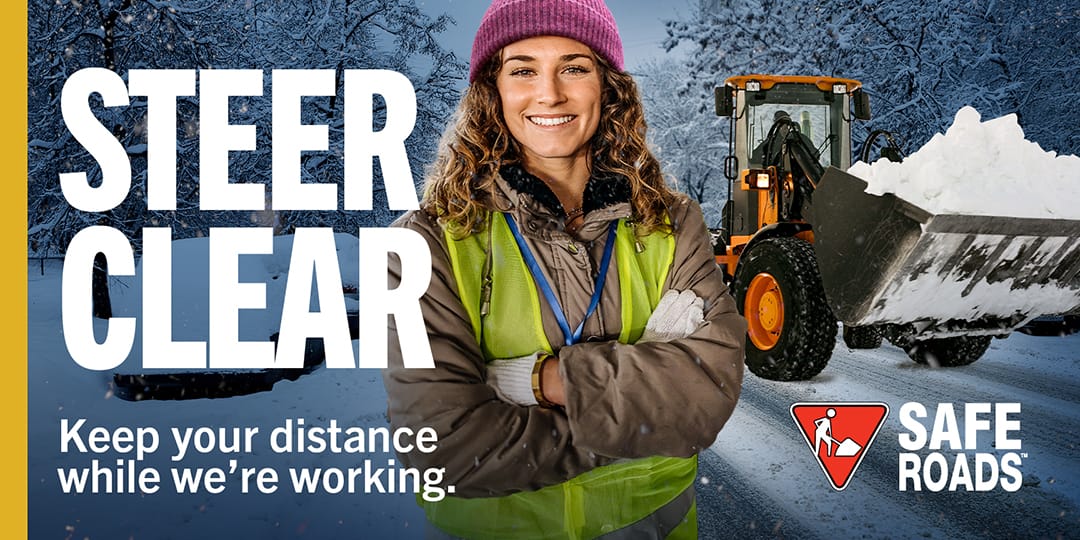 The 2025 SAFE Roads winter campaign reminds drivers to Steer Clear of plows and loaders this season. As the snow falls, heavy equipment operators need room to work.